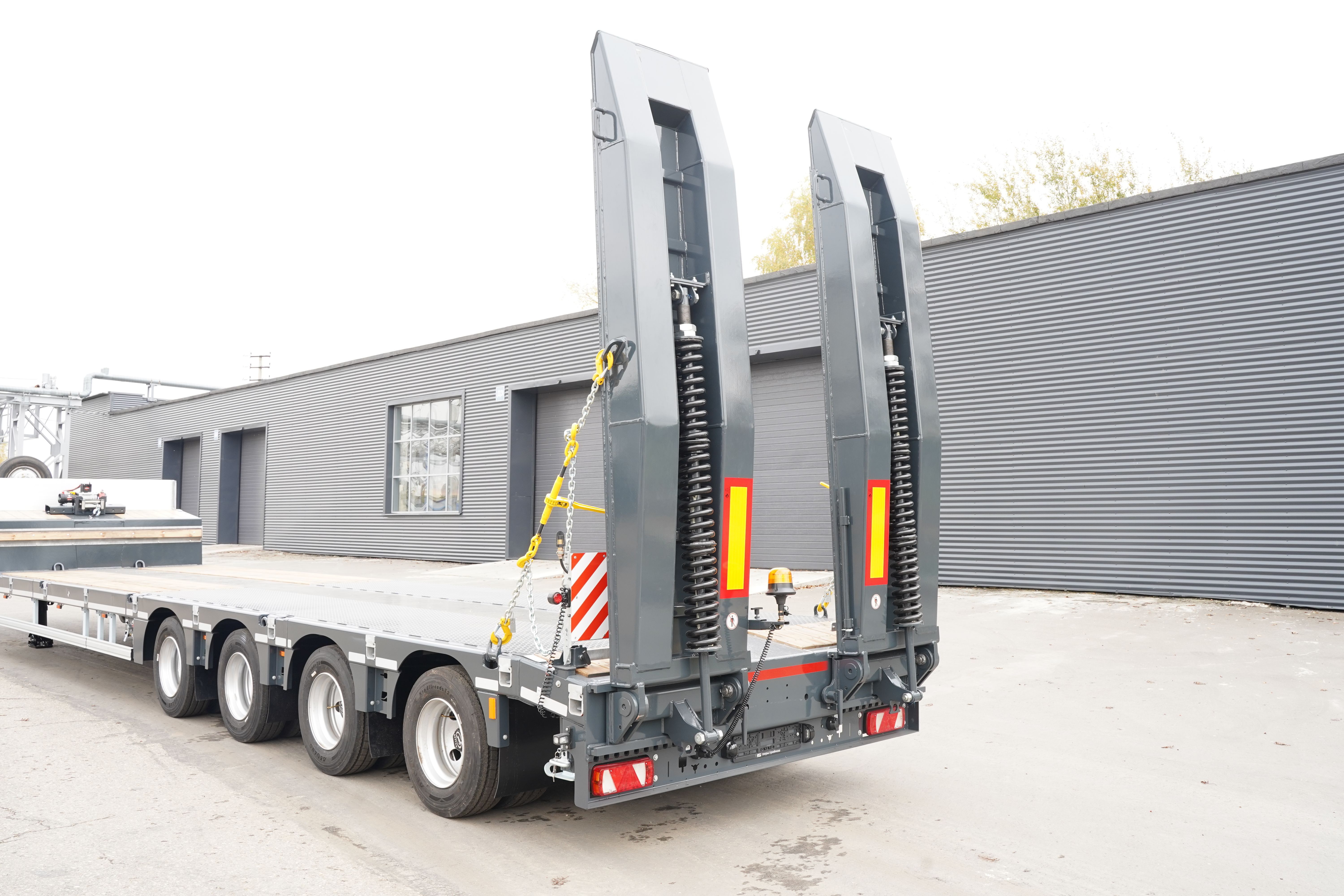 4-осный полуприцеп 993941-L54 – простой, но эффективный трал, обладает всем необходимым для регулярных перевозок между объектами. Продуманная надежная конструкция рамы, пневматическая подвеска, уширители грузовой платформы, 6 типов трапов, тормозная система последнего поколения и исчерпывающий набор опций создают условия для эффективной и безопасной эксплуатации.